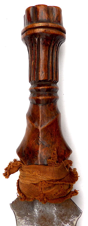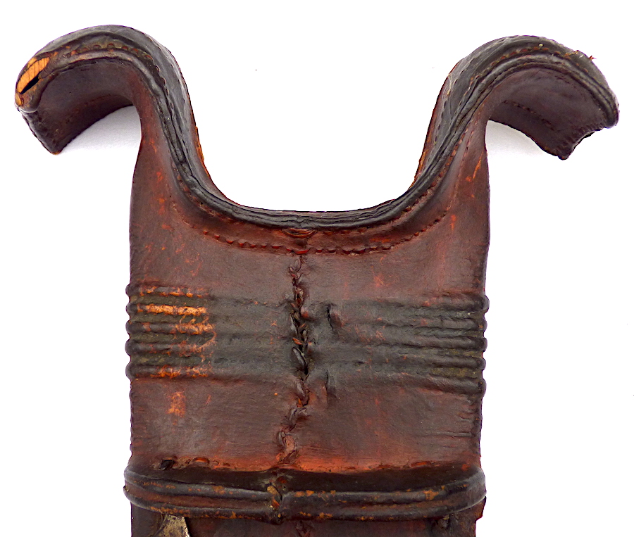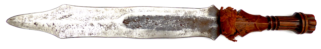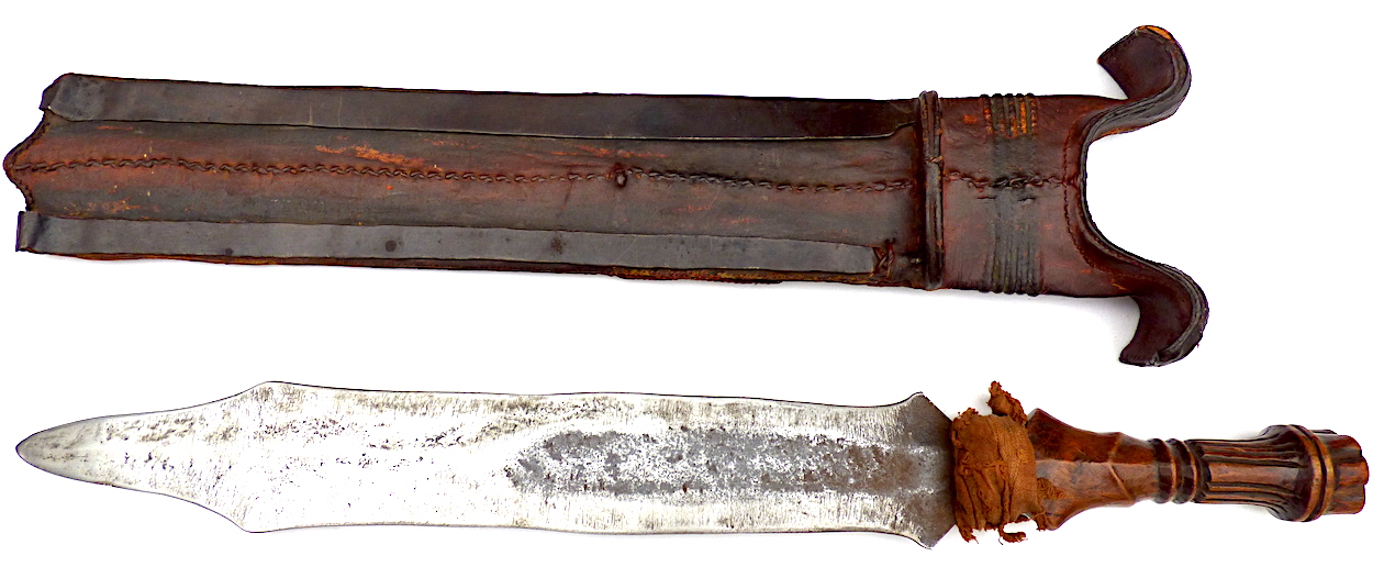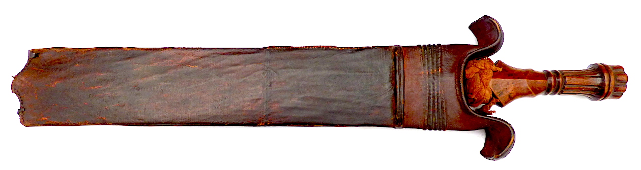 A nice example of a Salampasu sword in its original dark red leather scabbard.