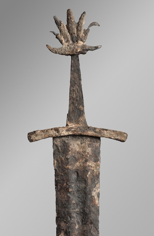 A variety of lobed or trefoil-shaped pommels were definitely used throughout Western Europe during the high medieval period, so I think you are right to reject any influence more exotic than possibly Andalusia. There are almost no surviving examples, but consistent artistic depictions suggest various trends in design. These forms are only barely covered in Oakeshott's typology, so there is plenty of space for further research. The closest analogue of the hilt depicted in the Spanish Beatus manuscript you mention is one that Oakeshott did publish at least once (Records of the Medieval Sword). Often described as a "Viking" sword, it was reportedly excavated in Italy, near Florence. Attachment 251262Attachment 251263 The next closest, from a grave in Sweden, is more clearly derivative from Scandinavian styles of the late Viking age, which include many lobed pommel forms. Lobed forms continue to be depicted well after Christianization, including in the famous stave church of Urnes. Attachment 251264Attachment 251265 Scandinavian influence seems to be reflected by the frequency with which lobed pommels are found throughout the British Isles, with identical forms often turning up at great distances in Norway or Iceland (the Cawood and Koysogarden swords discussed by Oakeshott being the best-known examples). Many stray pommels are now recorded with the Portable Antiquities Scheme. These pommels can plausibly be dated well into the the 13th century based on comparison with knightly effigies (attached from Temple Church, Furness Abbey, Jerpoint). Attachment 251266Attachment 251267 Attachment 251268Attachment 251269Attachment 251270 (continued below...) |