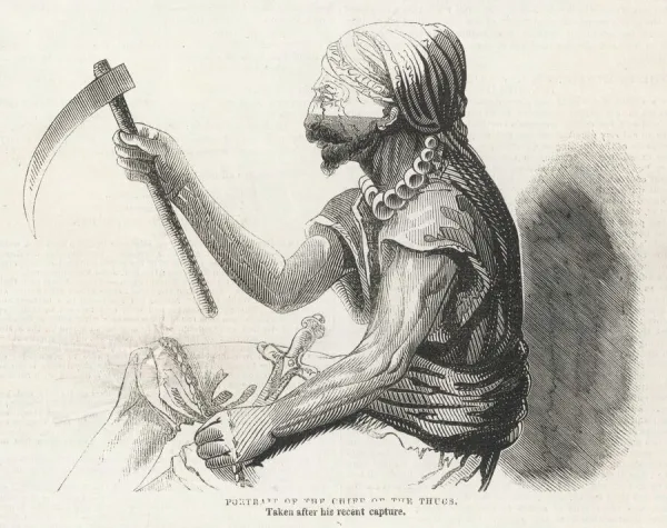 Thug Or a million murders <-link Didn't note in it any weapons mentioned for their murders, tho it noted in one place that in a group of 40 thugs, only three people carried a sword or dagger, they used a cloth sash for killing their victims. |