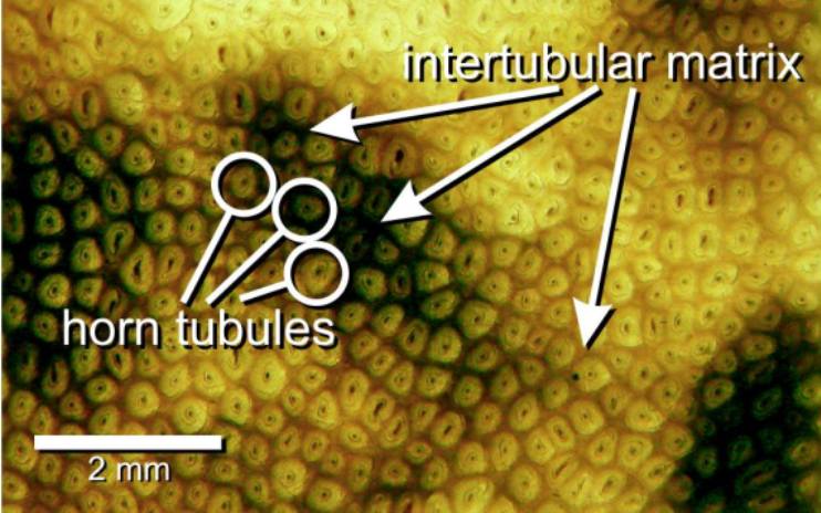 http://www.animalorphanagekenya.org/...2006_april.php This site may explain why other colours are seen, the outer pats of a big horn may be more course and even lighter in colour? http://www.sciencedaily.com/releases...1106144951.htm |