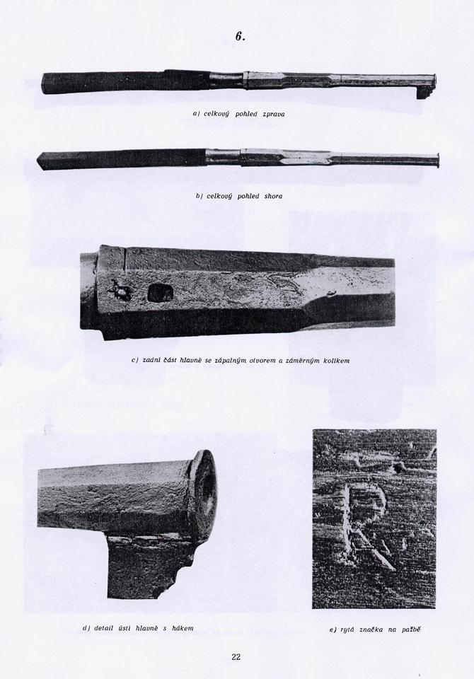 It was salvaged from the water at the Kurisches Haff, Poland, in the 19th century. The barrel is of cast copper alloy, the tiller stock is original and hollowed out to receive the ramrod. The item is preserved at the National Museum Wojska Polskiego, Warsaw.