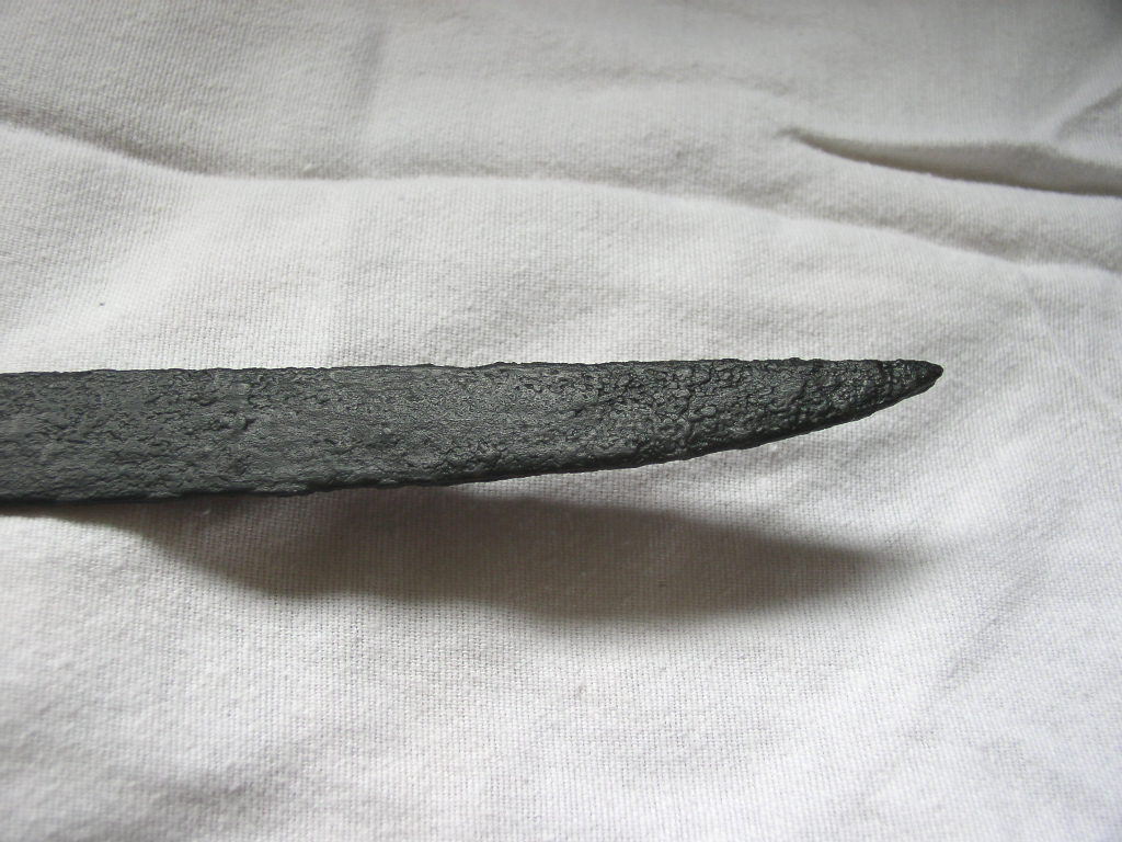 Weapons like this were in use in the 15th and 16th centuries. This particular piece dates from around 1500 with a very typical pommel for that time. It seems to have been restored with some sort of acid, so the overall condition is not so good. However, pieces like this are quite rare and it is a good opportunity to get a "real medieval sword". I myself bought it some years ago in a respected German auction house. Price is 300 Euro, that's 393 USD or 261 £. Measurements: Overall length: 85.0 cm Blade length: 72.0 cm Handle: 13.0 cm Weight: 585 g Peter |