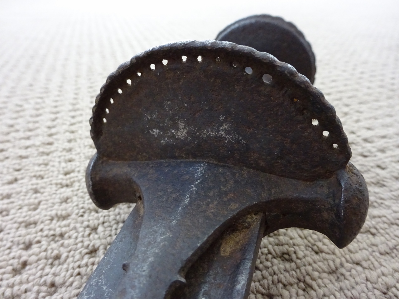 As Kubur has noted, it is seen on 'chilanum' as a 'half guard' as well (illustration added). I agree with you that the European influence would appear unlikely as this type of guard did not appear until late 18th century, and then in limited instances such as the court swords I mentioned. In Elgood's article on the Deccan, a khanda of late 16th c. with similar decorative motif as well as a tegha of late 17th, suggest that the style existed there well prior to the European forms I suggested. It seems the chilanum form, according to the Bijapur manuscript of the 'Nujum al Alam/ (1570) existed at least that early, but of course the frequency of this style decoration or the half guard is unclear. In the example of chilanum illustrated, the holes along the scalloped edge can be seen also. It appears that as often the case in Indian arms either hilt styles or perhaps actual hilts were often transferred to full size sword blades. In this case, the 'half guard' element seems amalgamated with a tulwar hilt, primarily a Mughal weapon style. At the Siege of Adoni (1689) many Deccani weapons were captured and taken by the Mughals, and many ended up in the armory at Junargarh Fort in Bikaner. Perhaps this tulwar was a product of such joining of styles, recalling the Deccani hilt forms. This example shows remarkable age, but is in iron rather than the brass or yellow metal preferred in Deccan, and as noted, is basically the Indo Persian style tulwar hilt of regions to the north. Obviously there are exceptions, but the Indo Persian tulwar is typically regarded as from north of the Deccan. It is also tempting, given the character of the blade on this example, to consider that perhaps it may be a German hanger blade of 17th c which were among those traded to Marathas in latter 17th. It does seem to carry similar back fuller style, later imitated by Birmingham swordsmiths from examples they imported in early to mid 18th c. Last edited by Jim McDougall; 20th June 2019 at 04:09 PM. |