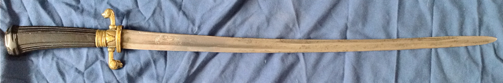 An 18thC French hunting sword of mine, the hilt form would suggest a common lineage. Regards, Norman. |
