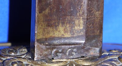 I've seen similar GG markings on British swords, like the 1786 spadroon below.
