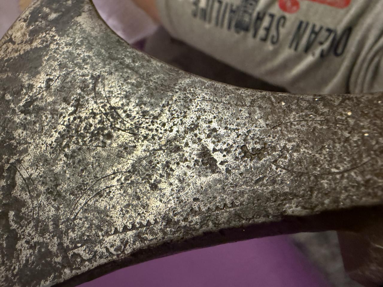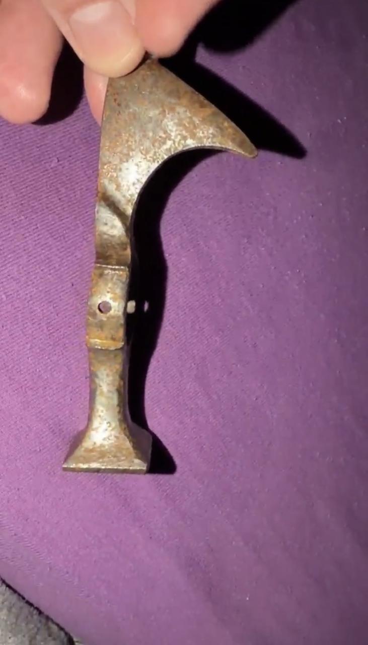 I never heard about fokos before, it does look very used, and it is very nice axe. With it i also acquired another one, i think it is chekn or something like that name, i saw several similar looking axes online, bit somebody cleaned it to the shining metal, inside of the shaft ring it is a old rust and patina, but outside was cleaned on my take is metal brush or some high speed polishing device, and someone driled holes on the sides. It is rather small axe, i think it is more some mix between spike and axe, for piercing helmets. But it isnt anything special, becouse somebody masacreted it with cleaning and driling holes, and allso it doesent have signs of wear or heavy use, and temeper of the point could be higher for piercing capabilities. Judging by the inner patina it is old, but. |