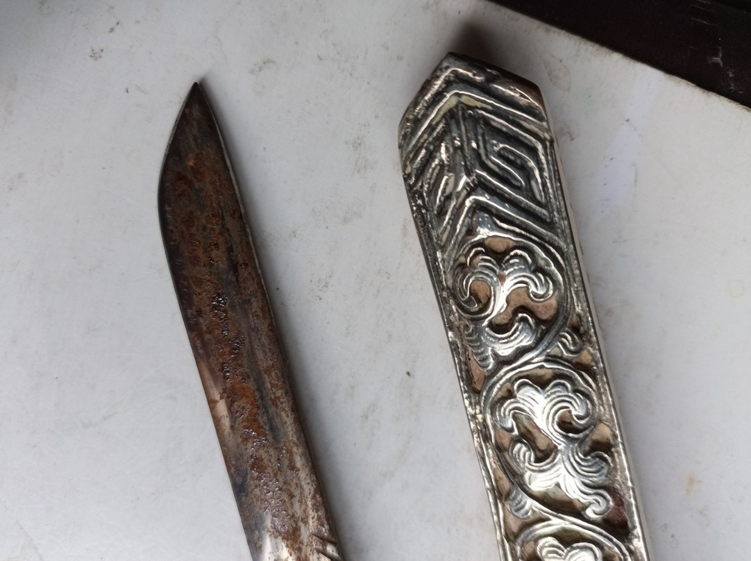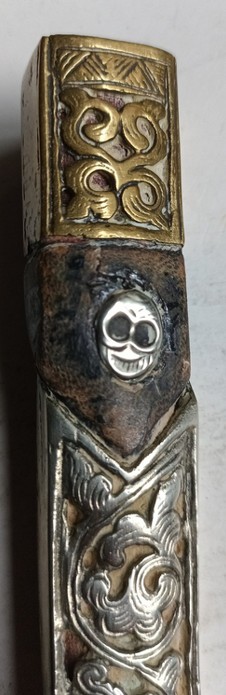 Details of its description : Old ceremonial knfie from Tibet mid 20th century blade: 9,3 cm, grip 8,1 cm. scabbard 14,5 x 2,7 x 2 cm. your thoughts please; is the description OK, is it a Tibetan Kampa knife ..? Is the age correct ? Any other remarks? Thank you very much! Gunar |