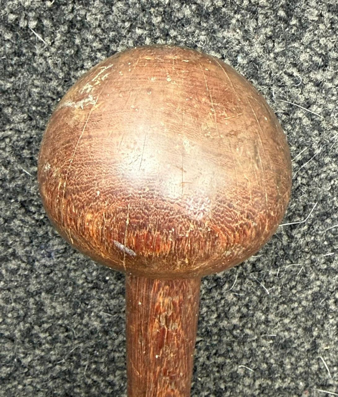 I am a collector of clubs (among many other things!) and for a long time I've been trying to identify the old, used and nicely patinated club below. I have been assured it is not Oceanic and there is disagreement among experts whether it is from Africa - it isn't Zula anyhow. ChatGPT analysed the style of carving on the grip section of the handle and insists it is from SE Asia, however, I have not found any mention on the Internet of ball-headed clubs from that region (but the mentions may be in Dutch). Does anyone recognise this type of club? Note, that the rings on the handle are hand carved - not turned on a lathe, and that the club is 54.5 cm long. Thanks!