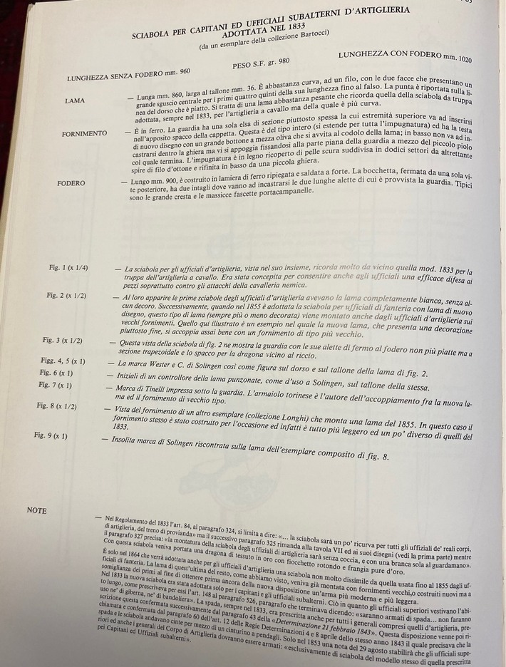 I would be remiss without mentioning Matthew Forde's La Sciabola, which you can access via the internet with a 1-time-fee as well as a physical copy he occasionally has for sale. I owe him many sword photos when I get my army-in-waiting sent to me finally. It is in English with some photos in the back though more of a chronology of various patterns & tied to the Savoy history of unifying Italy. Would go so far as to say there is an implicit assumption the reader is mildly familiar with Italian sabres to begin with, or is able to supplement reading with google-fu, but that is by no means a criticism at large, just something to be aware of going in. From what I've learned over my brief tenure so far, the major roadblock in reprints and new books is less the information and more museum copyright laws for the photos listed which makes it quite difficult. What is the most impressive element of the 1833 pictured above, to me, is that it has retained the throat of the scabbard! Not sure why those were such high priority thefts and only for Italian swords. |