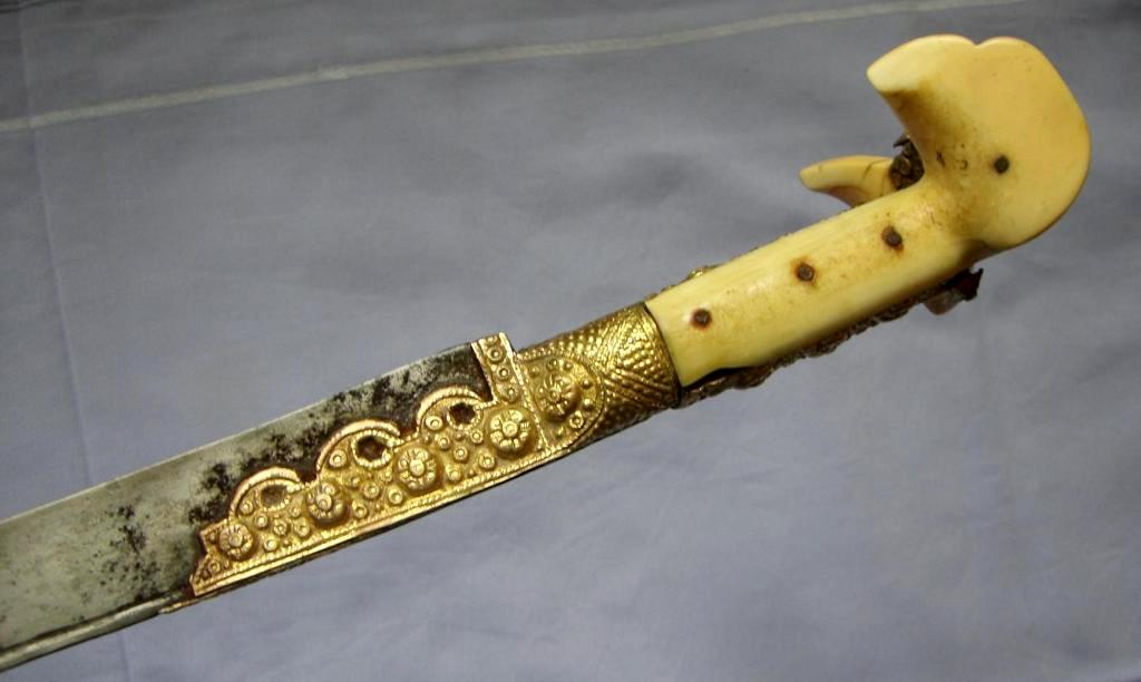 I would like to offer 19 century Turkish Yataghan for sale. Ivory grip with gold fittings decorated in button motifs. Total length 74 cm / 28 inches. Price : US$955,- / 600 EURO (Shipping worldwide Included). Payment : Paypal. I do not know much about this kind of sword so I can not explain more about blade. (Some code on the blade that I believed made of silver inlay). Let me know if you are interested and I can sent you more photos. My email is bundhiweess@yahoo.co.id Thank you. Brekele. |