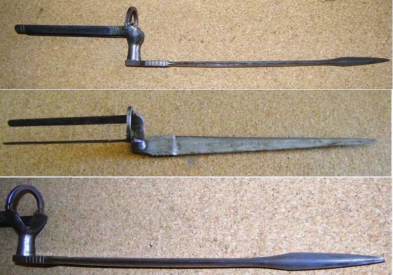 2 - Bayonet (Sangin) for an Indian Toradar musket, with a reinforced tip. 175 Euros. 3 - Rare 19th century African sword from the Mossi people. European influenced bronze hilt. Zoomorphic pommel, 67 cms blade. 180 Euros. 4 - Otoman kinzhal with a 12 cms blade with silver koftgari and a horn handle, with an unusual textile scabbard. 180 Euros. 5 - Small Dha Hmyaung with a 16 cms blade. 40 Euros. 6 – Old African (Sahel) bronze spear head with 20 cms. 30 Euros. PM or email me for details. fernandoviana@netcabo.pt . |