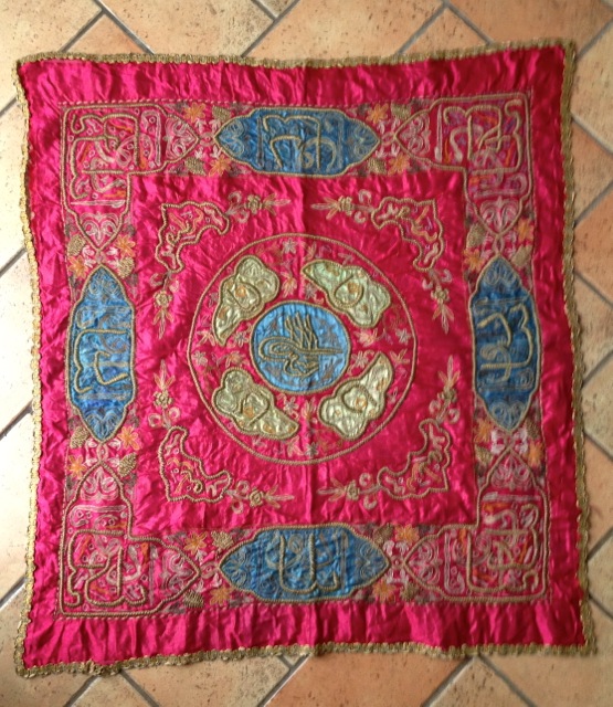 No a weapon I know, but here we got some profi translators (Dom, Zifir,..), so Im posting this here. It is a nice turkish emroidery tapestry from sil and bullion. It has inscriptions and tughra. I need a translation of the inscriptions and an ID for the toughra.