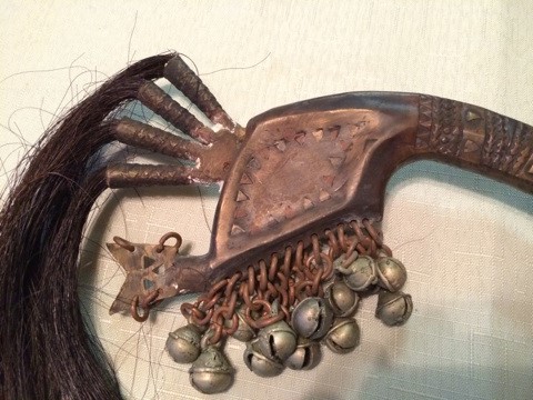 I was able to secure this piece recently as am very interested in knowing more about it from all the experts here on this board. Any and all insights and thoughts are welcome. I'm confident that it is Bagobo and is ceremonial. The scabbard itself measures 19". The blade (not including the handle) measures 15.5". The chain extended and unhooked measures 33". It's a large, heavy and impressive piece. You'll also notice the markings on the blade (which point me - among other things - in the direction of Bagobo). Sadly, it was damaged in shipping. The two protruding tip pieces at the end of the scabbard tubes were injured. One was bent quite a bit but still attached, the other was broken clean off. A shame, but repairable I assume. Thanks in advance for your information. Please educate me. |