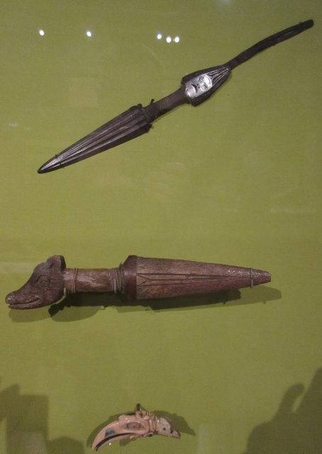 A follow up from Colin's visit. Nice club and wooden amour with really fabulous Killer Whale helmet which must have looked spectacular when complete.