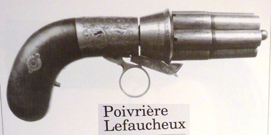 .As i started by mentioning the Allen & Thurber in my previous post, of which i didn't include a picture because their typical stocks are not the type of Phil's or British examples. For the matter, it is only the firing system that counts. For perusal, here is a number, among many, of Liege pepper boxes from my little book "Pistolets et Revolvers de poche au XIXème siècle". . |