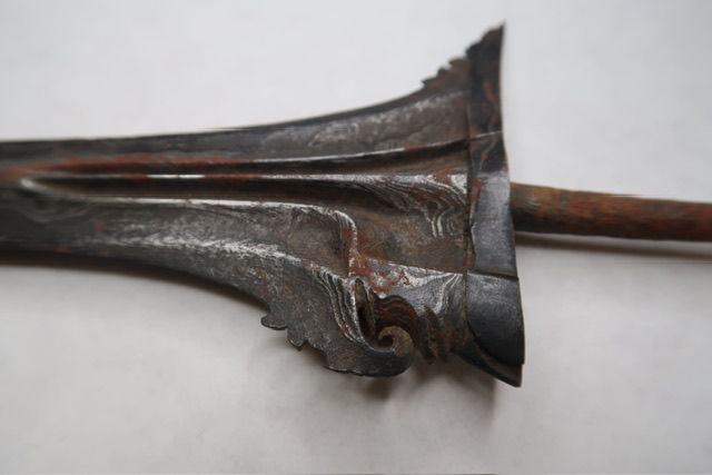 My name is Martin and I am from Amsterdam, i am a teacher in restoration and art history and collect since several years Keris mostly from Java Surakarta and Solo. Although the occasional Sumatra Keris is in my collection too. After lurking for months on this forum about the Keris I will post my last addition to my collection. It,s a Balinese Keris I bought at an auction and it comes from a Dutch collection that was housed in a castle in France since 1923. Sadly no warong or mendak. It,s a beautiful blade I guess from the 19th century. Its slightly rusted and I just started the removal of the surface rust. Would like to know in what type of warong it would have been dressed.. Best wishes, Martin |