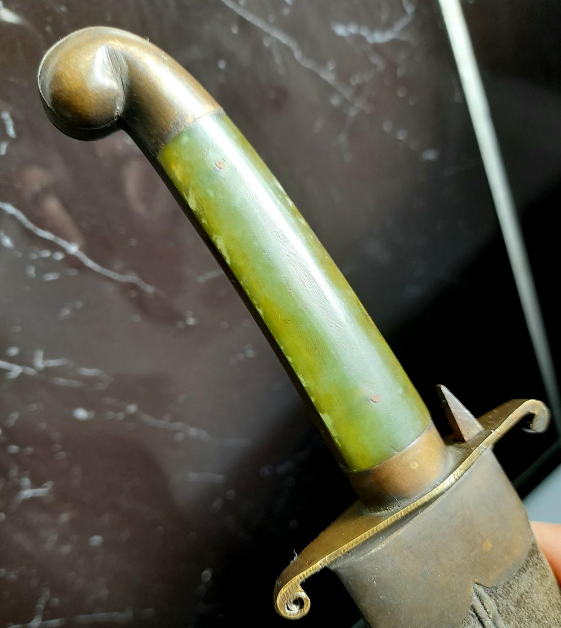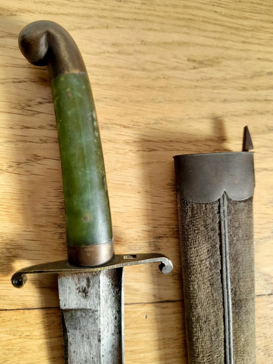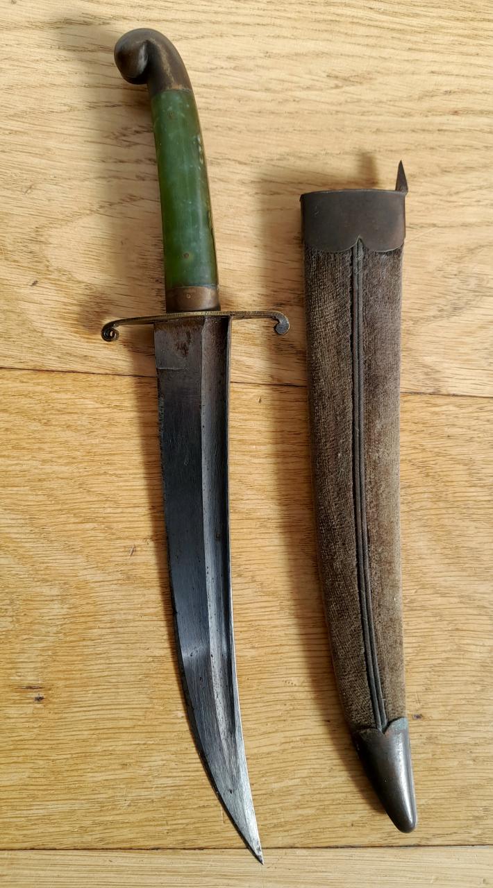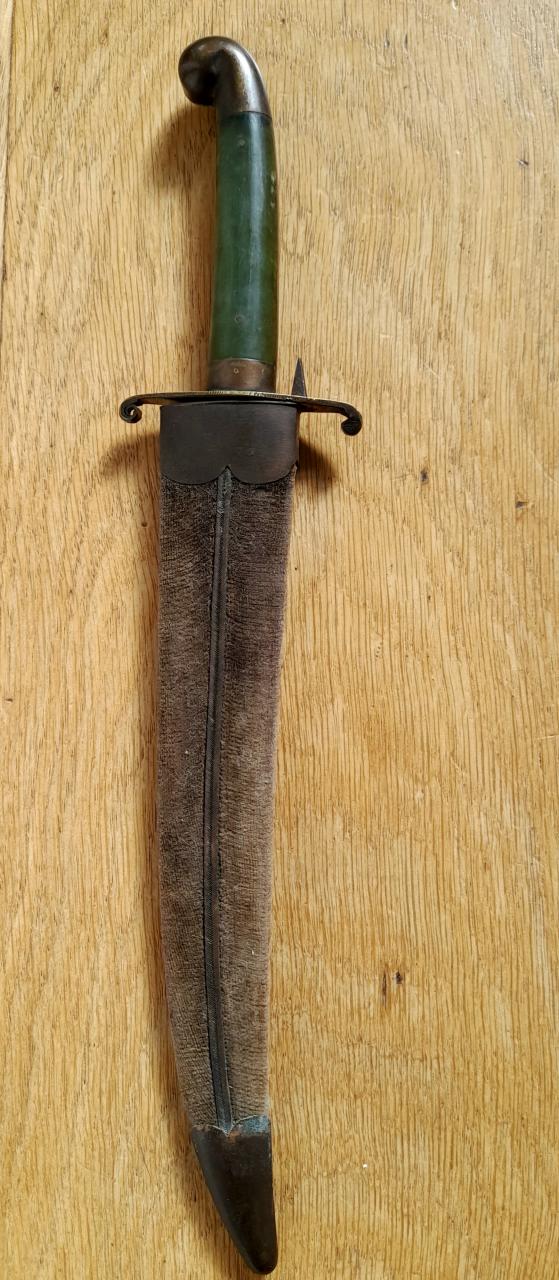 Available. Rare 19th cent North Indian dagger. Jade hilt. Green velvet scabbard with fine stitching. Very well forged blade. British India, Anglo Indian. Nearly mint condition. 225 GBP plus postage.