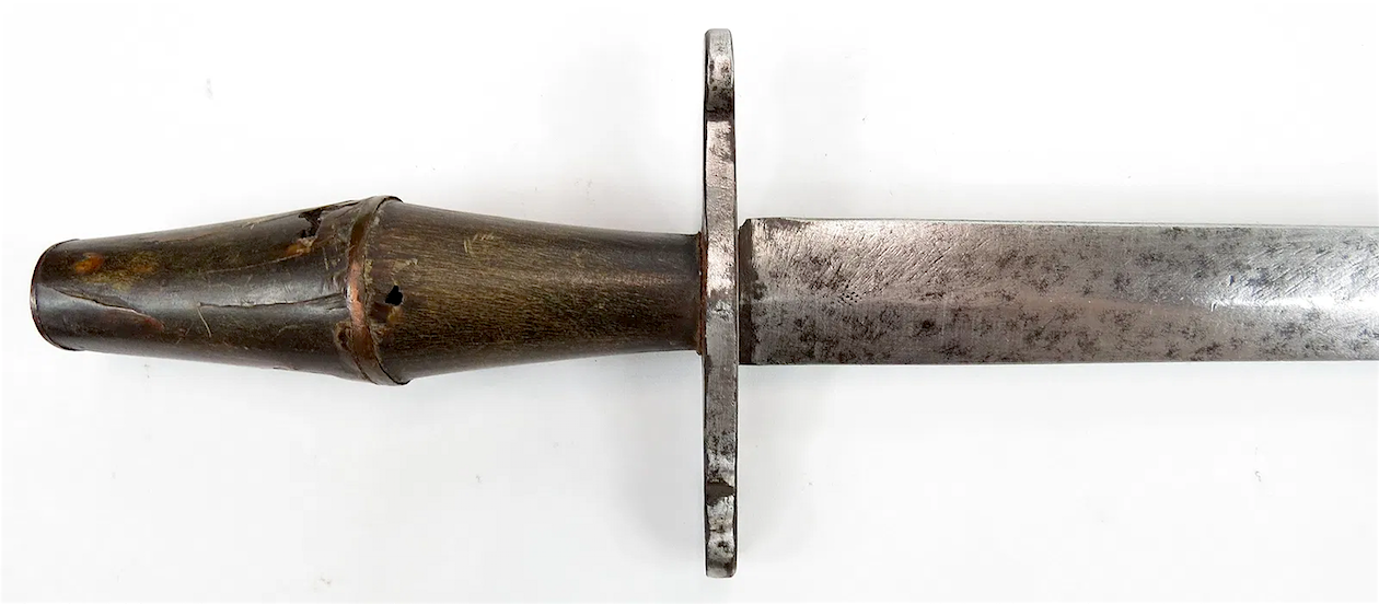 The double-edged, symmetrical, straight blade has a flattened diamond (lozenge) cross-section, and tapers linearly on both sides to an acute point. The blade shows residual signs of coarse grinding, typical of much Filipino work. The hilt has a prominent swelling in the center of the grip, which is a well known Spanish style, and the knife likely comes from the Spanish Colonial period in the Philippines where I believe it was likely made judging from the materials used for the hilt. The end of the hilt is not visible in these pictures, but if it were to show a full length tang then that would add to its Philippine heritage. This is probably an all-original Spanish Colonial knife for use rather than for show. It is hard to judge its age, but likely no later than 1900 in construction, and could be earlier in the 19th C. . Last edited by Ian; Today at 02:24 PM. Reason: Spelling |