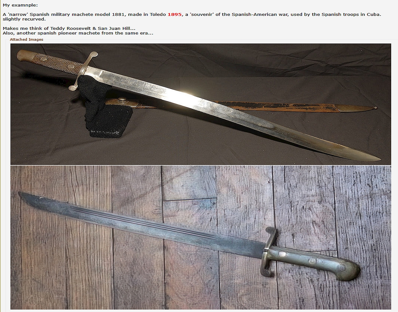 http://www.vikingsword.com/rila/costeno.html https://www.antiquers.com/threads/le...machete.79462/ Collins & Co. The Collins Company was founded by brothers Samuel Watkinson Collins and David Collins and their cousin William Wells in 1826. Purchasing a property along the Farmington River in the town of Canton, Connecticut, later renamed Collinsville. The Collins Company line of products would grow over the years to include not only axes, but also machetes, hatchets adzes, brush hooks, picks, shovels, knives, swords, bayonets and plows, making them the world’s leading manufacturer of edge tools. The Collins line of machetes was so popular in Central and South America that they were referred to as a “Collins” and 90% of the machetes sold in these countries were made by The Collins Company. The company operated several manufacturing facilities in Guatemala, Mexico, Columbia and Brazil. Collins bayonets were used during the Civil War, axes and picks and other tools made their way to the California Gold Rush, Admiral Peary brought numerous Collins products on his trek to the North Pole, and Collins tools were used almost exclusively for the construction of the Trans-Siberian Railroad. The Collins Company manufactured shovels, picks, axes and machetes for World War I and over 1 million machetes were purchased by the U.S. Military for World War II. 140 years after the inception of the Collins Company, the factory closed its doors in 1966. |