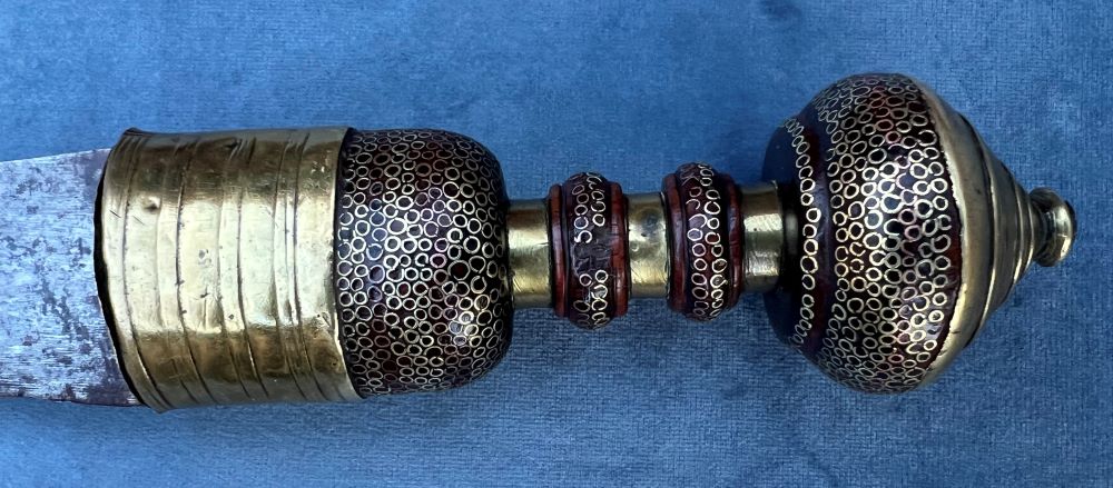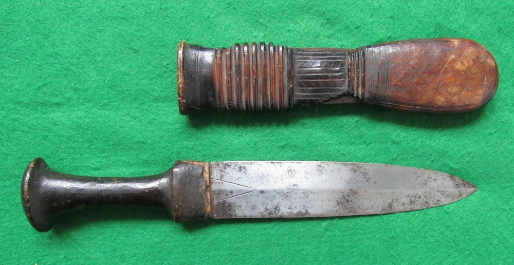 I'm more interested in the brass wire inlay on wood. Inlay is also found on Ikul (Cuba) daggers, but the technique is completely different there. The handle shape is also somewhat similar. |