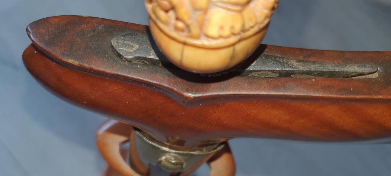 4) I would like to replace the damaged buntut with something to match the hilt. Would camel bone be appropriate?. I have some ivory scraps that could work also but I would prefer to use bone.