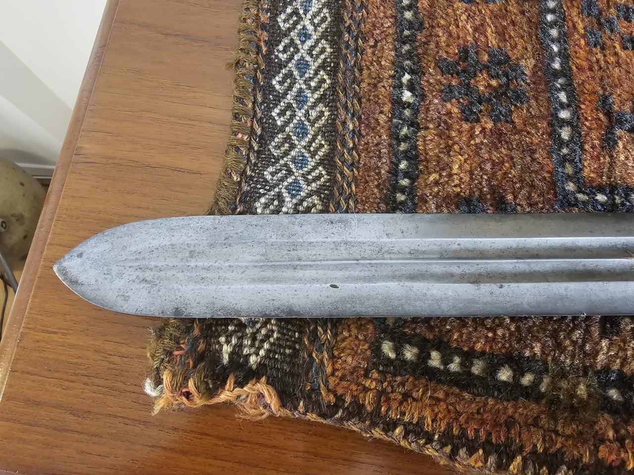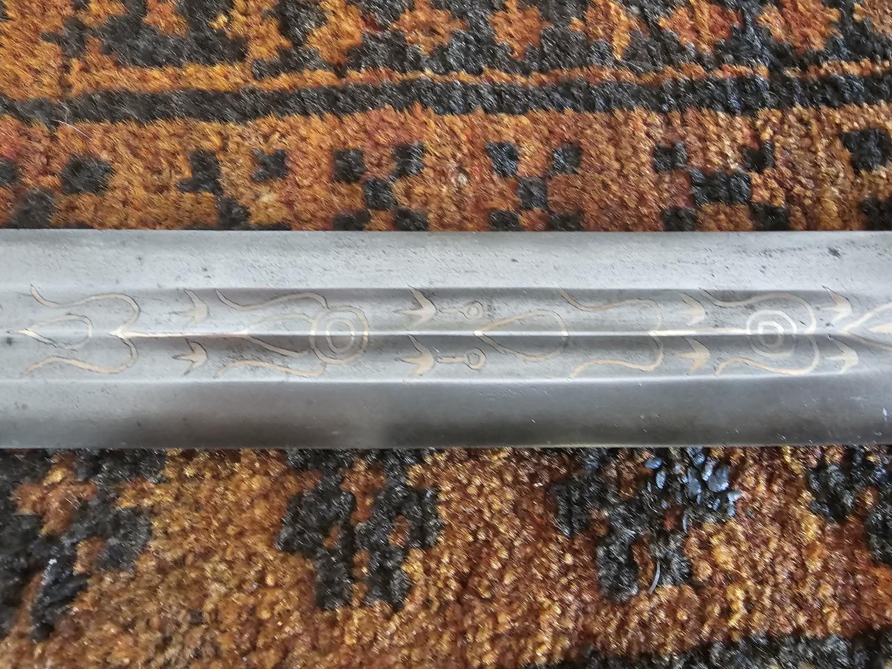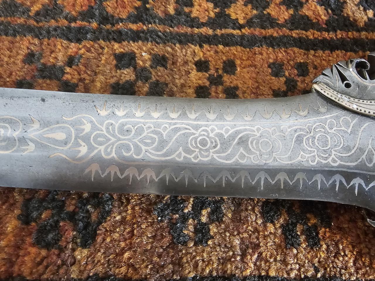 The floral inlay patterns are broadly reminiscent of islamic iconography, and the curved, circular, and drop shapes running up the fuller are reminiscent (to me) of Dayak or Batak iconography. Keen to hear hear current thinking on these. |