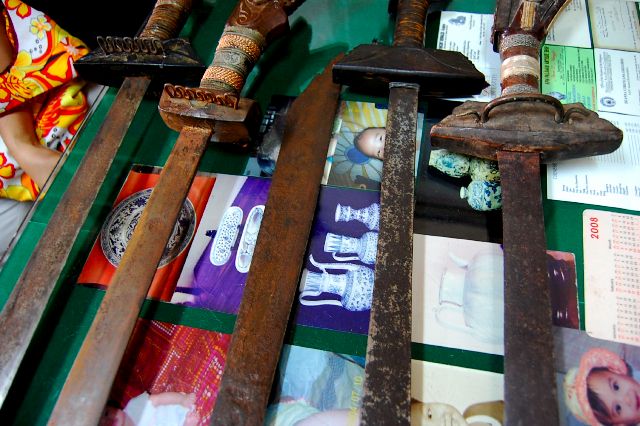 Following Spunjer's tip on which shop to check out in Manila for good Moro pieces, I got to see the other day the five kampilans below.
