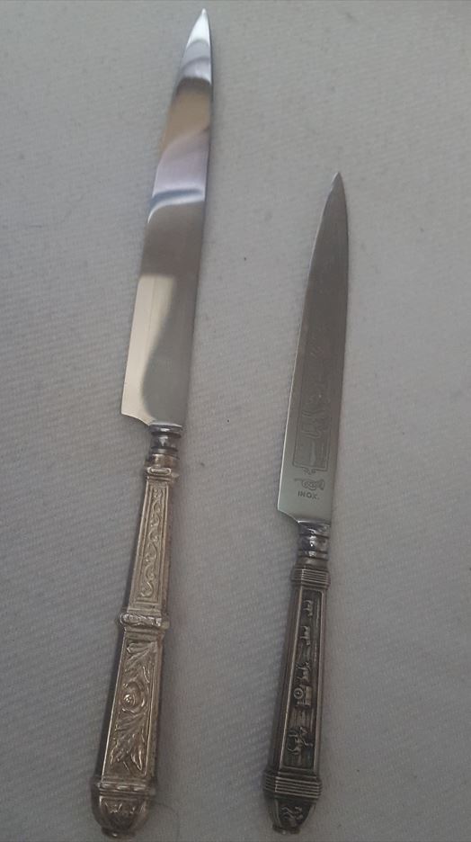 ![]() Google Translate is your friend: text Postings should be in English. Or in both languages. Post #1: Spanish translated: Trumpet blade stainless steel knife with white metal handle and scabbard Knife with Uruguayan button sheath worked with flowers and arabesques, in the photographs you can see the details of the work In good conditions Measurements total length with sheath 23.5 cm approx. total length without scabbard 22 cm approx blade length 12.3 cm approx width of the sheet at its widest part 1.7 cm approx spine width approx 2.5 mm My knotted bugle one and a couple more EDC, less formal ones, not Uruguayan. Both are Argy ones if I recall. Last edited by kronckew; 14th April 2023 at 05:44 AM. |