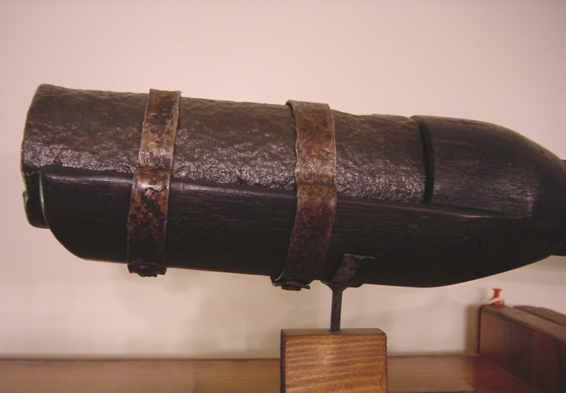 I am so glad that you appreciated my lines on your fine and early 'hand gonne' (the historic term) barrel from Aljubarrota, and thanks for providing us with the additional information. You also mentioned a book given away by a Portuguese bank and containing illustrations of matchlocks. Unfortunately I do not have that in my - otherwise quite comprehensive - library. So if you could please be so nice and post those images, and also the bibliographical data of that book, I would be much obliged to you. To sort of back up my opinion that barrels which are wound up of band iron and then fire welded rang among the earliest of their kind, I enclose an image of a massive cannon barrel of ca. 1350, made exactly that way. It is in the Musee de l'Armee in Paris and is about 1,80 meters in length, with the fore end of the muzzle gone. I put my bag next to it for statistic comparison. Now if you look at my little Aljubarrota barrel of about the same date you will see the strikingly close relationship in both shape and make. Looking forward to receiving more information, and lots of thanks in advance, Matchlock |