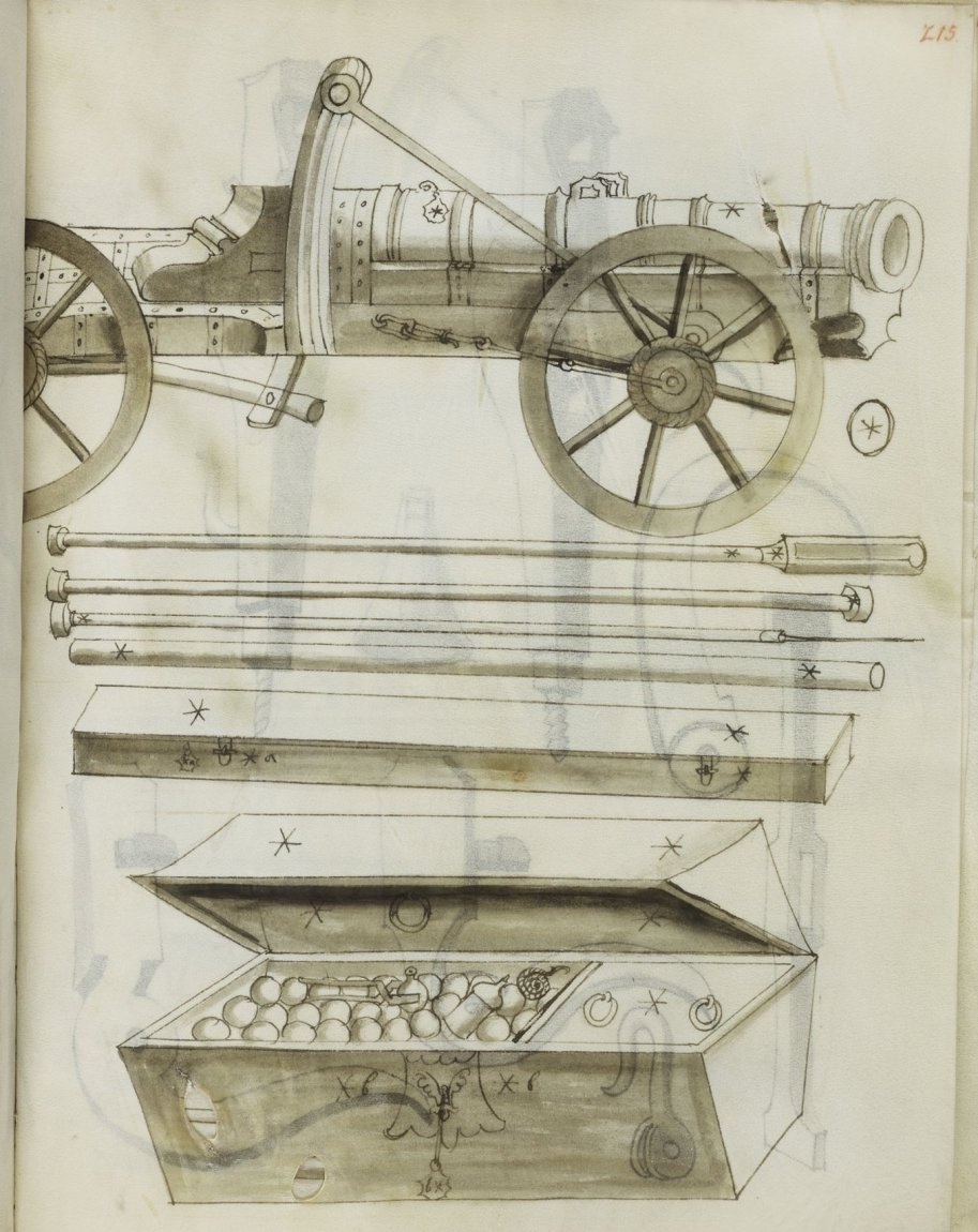 Two more Late-Gothic German ammunition chests/caskets partitioned for various accouterments are illustrated in the Kunst- und Wunderbuch (Book of Arts, Crafts and Miracles), Weimar, ca. 1520.
