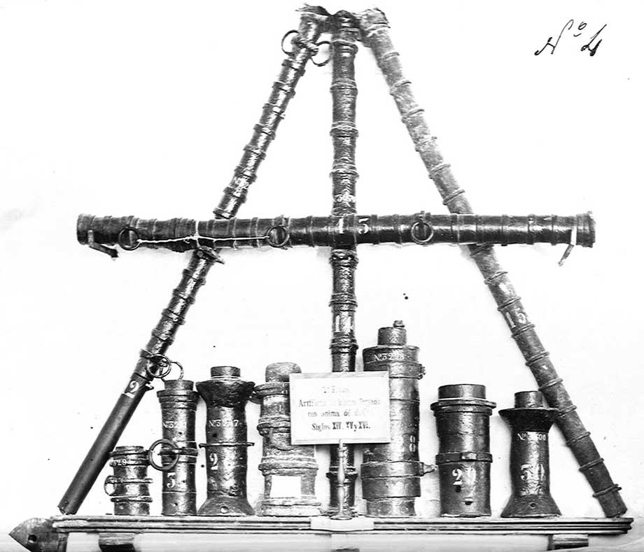 - an extremely rare wrought iron chamber for a small breech loading falconet (Kammerschlange), ca. 1450, length 23 cm, bore ca. 3 cm; yet in my collection, but for sale as I do not collect cannons any longer - two views of such breech loading cannons: the first in the Historisches Museum Berne, ca. 1460-70, the carriage an early 20th century reconstruction; the second a line drawing from the Maximilianische Zeugbücher, ca. 1500 - a beautiful breech loading matchlock harquebus, dated 1553, made by Peter Peck in Munich Michael |