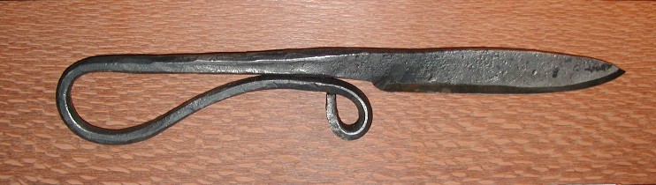 A crude (read 'undecorated) looped handled curved dagger just finished on eBay....certainly not a high end piece ..but has functional charm.....missed the auction otherwise it might have ended up living with me.