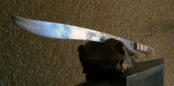 This commission is based on characteristics of real antique yataghans (most of my documentation I got from Ethnographic Arms and Armour Forum, and also from Artzi Yarom Oriental-arms site galleries). Nevertheless, some of the characteristics differs from traditional technics, because of today's constraints, or because of the commission itself. This I would greatly appreciate to discuss with you. So, first of all, here are the main characteristics :