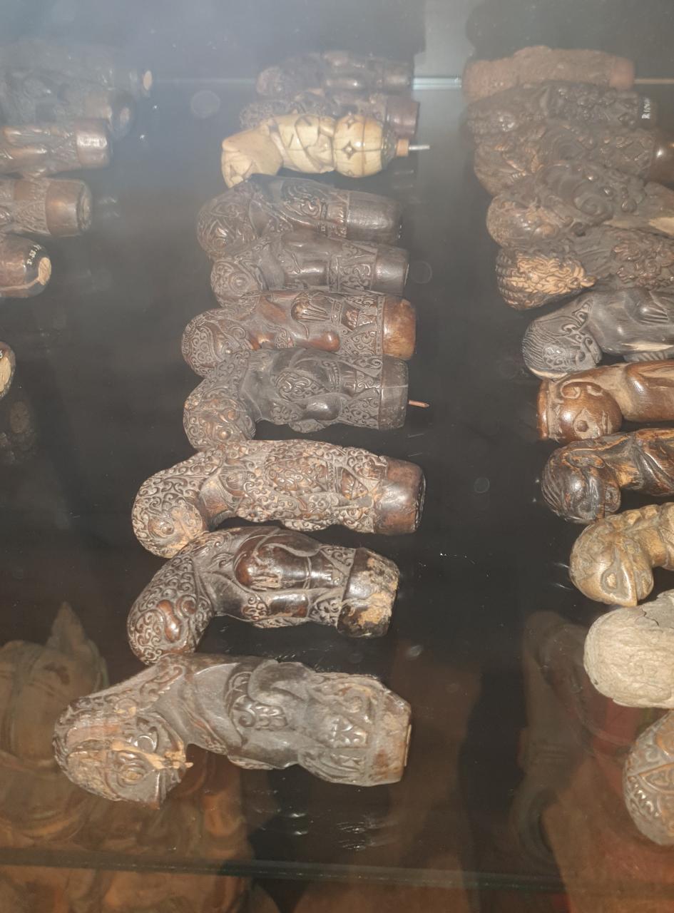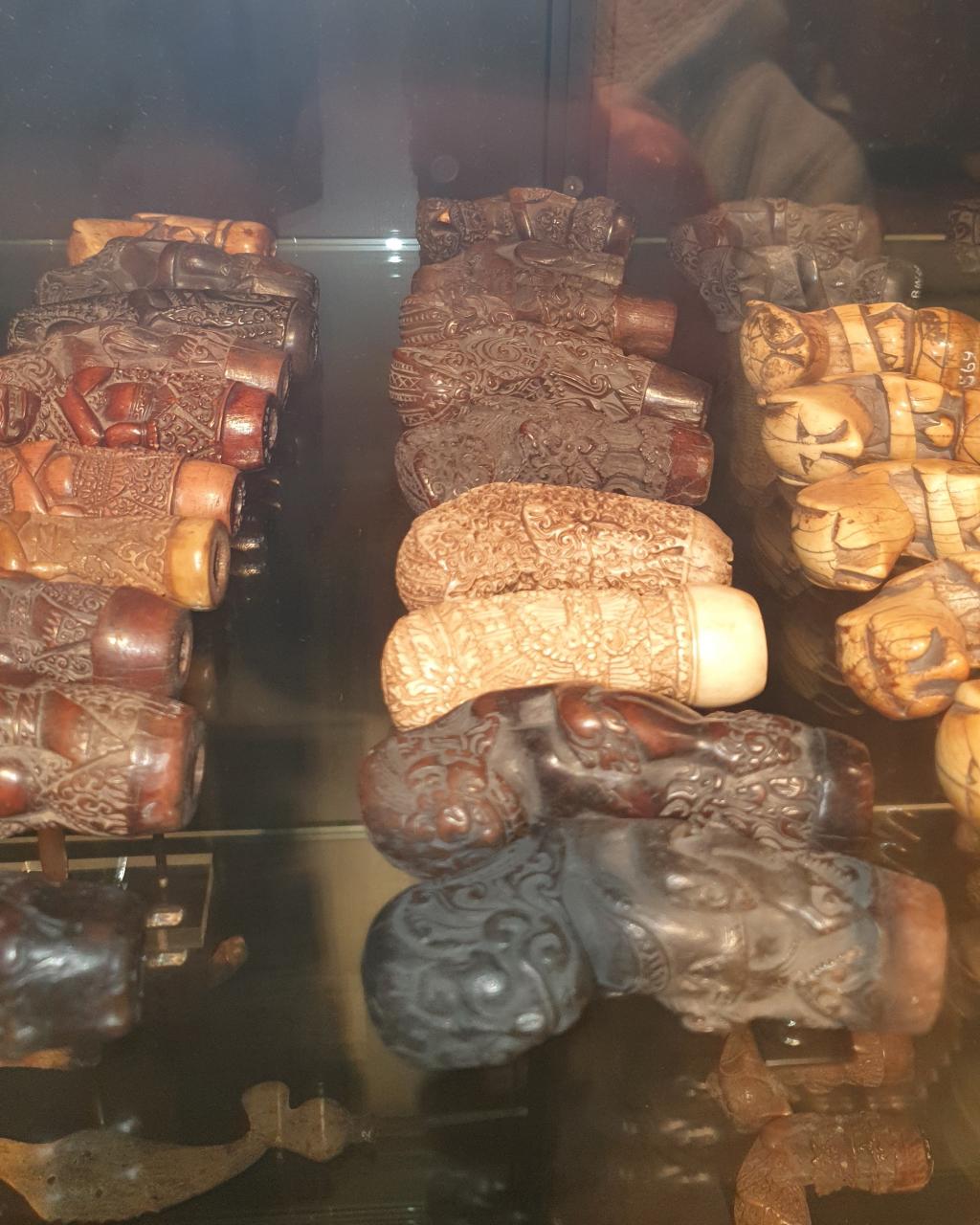 I was recently in Zurich and visited the Rietberg Museum, which has a truly extensive ethnographic collection. Unfortunately, ethnographic weapons are in the minority and are mostly kept in storage, although this is open to visitors. In addition to a few edged weapons from Indonesia, there are also a few keris there, although they can only be seen in their scabbards. However, they do have a fairly extensive collection of hilts. Here are a few not-so-good photos I'd like to share with you.