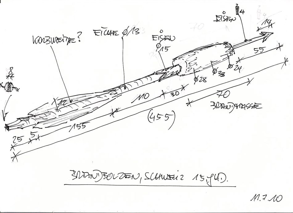 Here they are just in case the person in concern reads this thread. It'a 14th/15th century Swiss incendiary crossbow quarrel; the haft is of oak, the flights are of osier (withe). All data in mm. m |