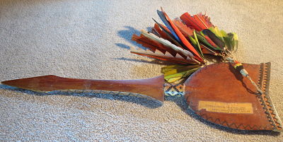 Adding another club very similar to a Bora? club I already have. This one is a little more decorative with feathers also lacking a central ridge. Both are 60cm in length. I hope to show more when it arrives.