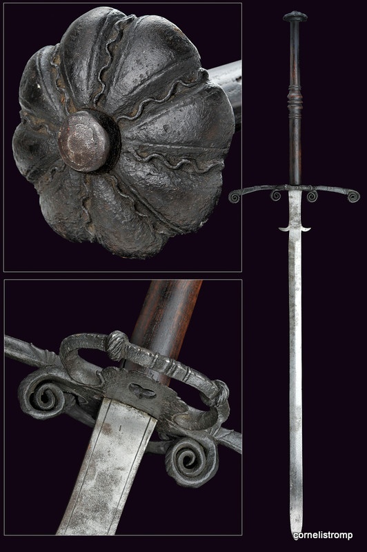 from the army museum in Brussels, developed katzbalger with complex basket hilt around 1550 and a later pierced blade