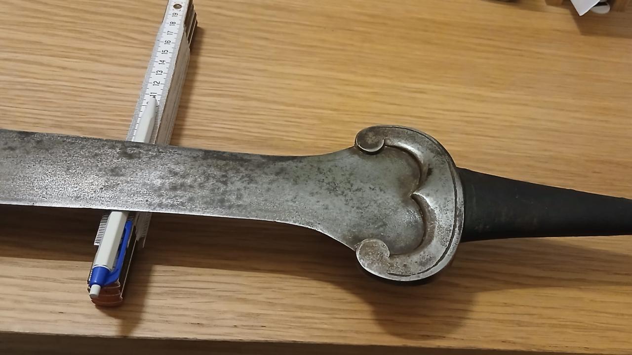 The leather-covered guard is old, and the wide, flat, and sharp blade as you said , which shows clearly some age and is made of quality steel, reminds me of my 16th-century Italian sword/storta.