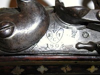 In looking into the gun locks used on these I notice that while the earlier ones with the quartered heart prevail (until use of the rampant lion in 1808) there are a good number of examples using a heart with heraldic 'flaunched' design. Both use the same configuration of the initials VEIC.