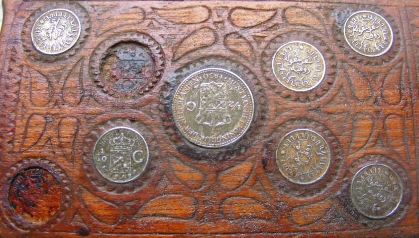 YW Detlef As for the coins (I used to be a passionate numismatist in a previous life), they appear to be (can't be too sure from the photo) pre-RepublikIndonesia coins(see attached example). Please judge for yourself.