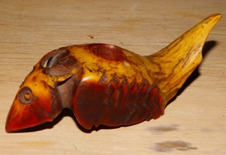 It is a hornbill ivory carved piece, used as belt buckle of a mandau.