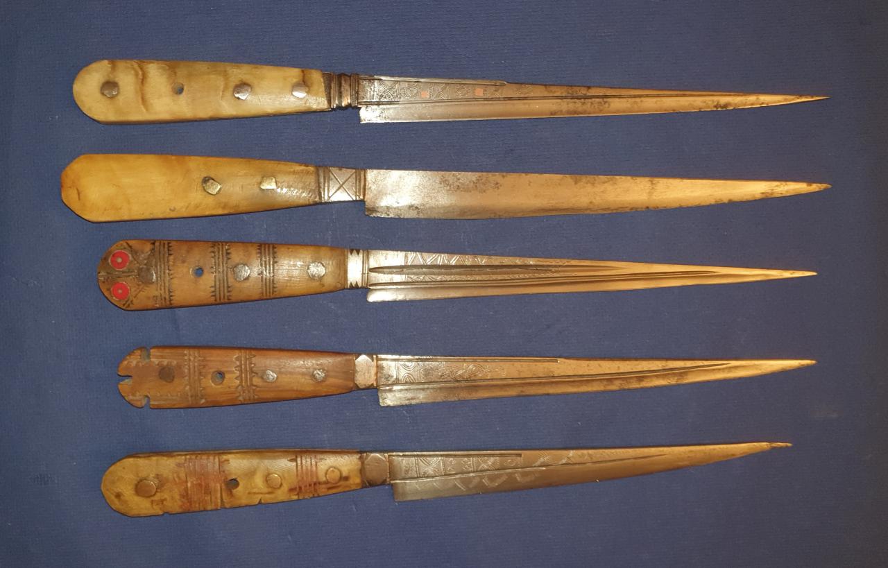 Most of you had done a much better job collecting these knives than I have, but the thread inspired me to add a simple wooden hilt one to the couple I had before.