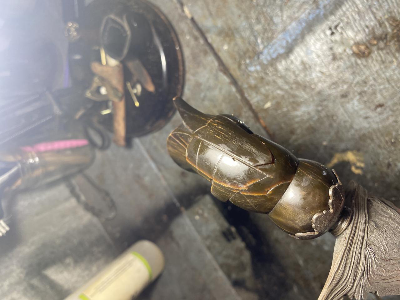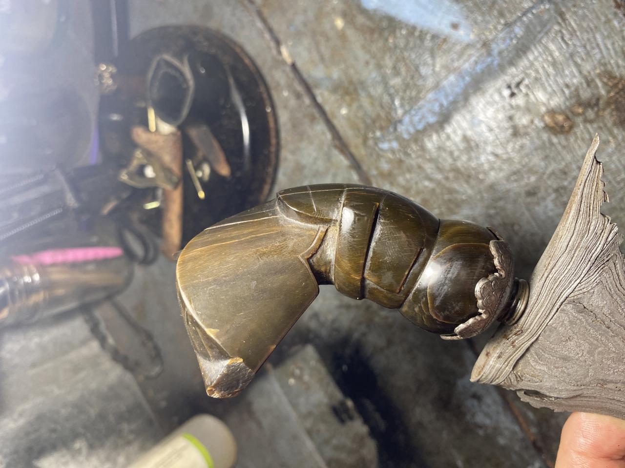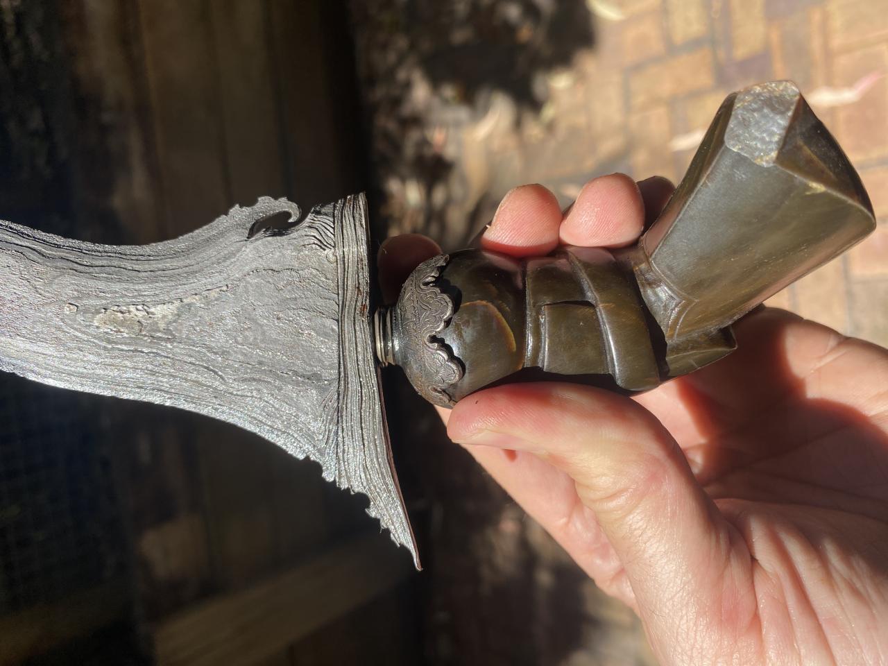 Hi all; does anyone have any insight into the hilt material? It's obviously horn (tanduk) of some kind, which means it would normally be buffalo/cow, but I'm a bit puzzled by the greenish-brown colour.