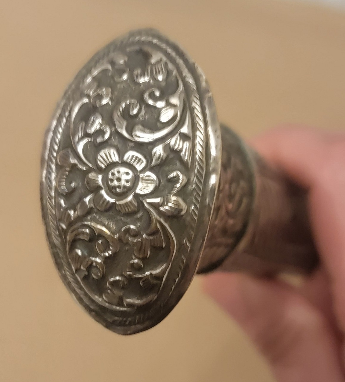 Hi all; does anyone have any insight into the hilt material? It's obviously horn (tanduk) of some kind, which means it would normally be buffalo/cow, but I'm a bit puzzled by the greenish-brown colour.