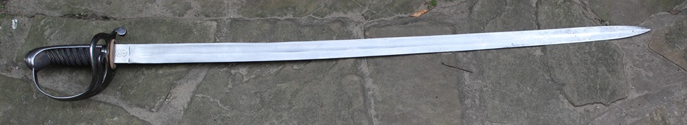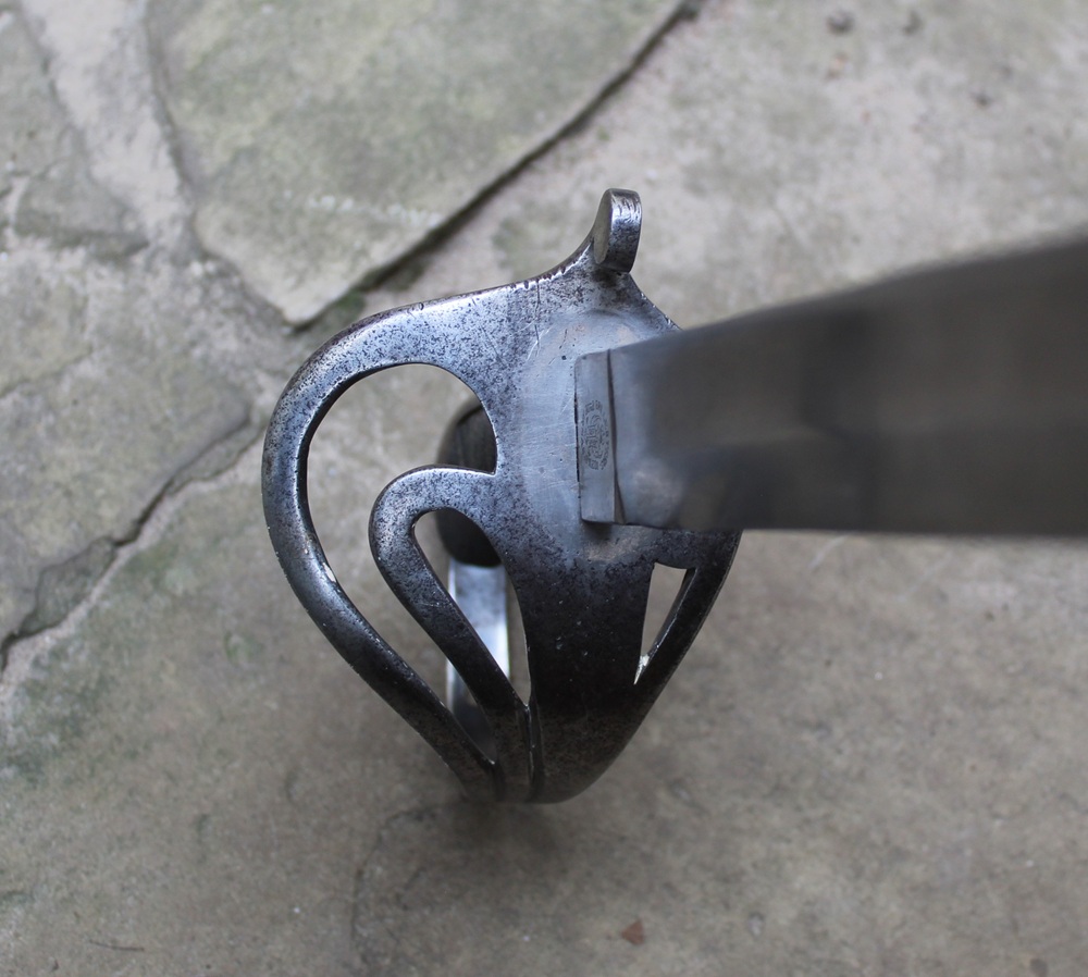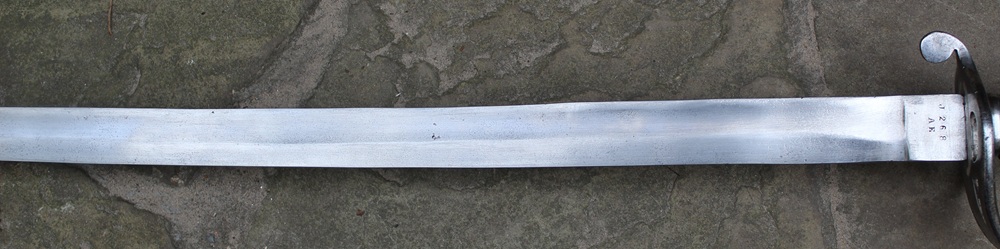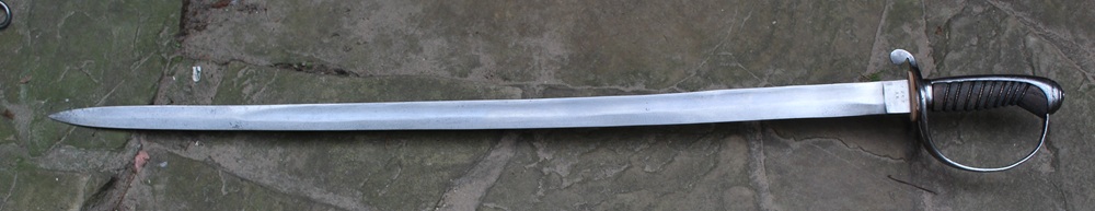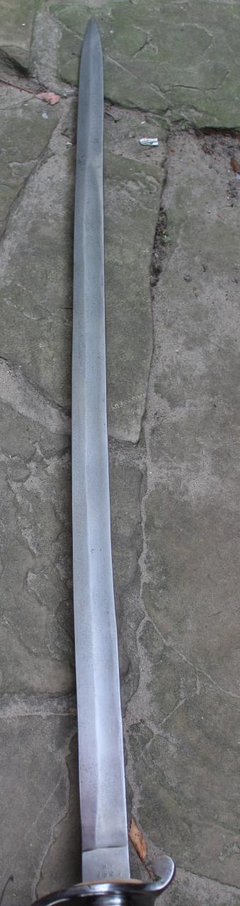 Even before steam engines, water powered hammers were used for the vast majority of the heavy hitting. The days of making sword blades with just two men and their hammers were long passed by the time this blade was made (and that includes the Napoleonic wars). If anything, the sheer number needed to supply an army necessicated more advanced production methods. Looking at your sword, the blade profile is incorrect for the era of the Napoleonic wars, at this time fullers extended almost to the hilt and sabres tended to have more curve. You can be confident that your blade is of 19th Century production. It has a later period scabbard with the single ring and if it's a good fit then they were made together. |