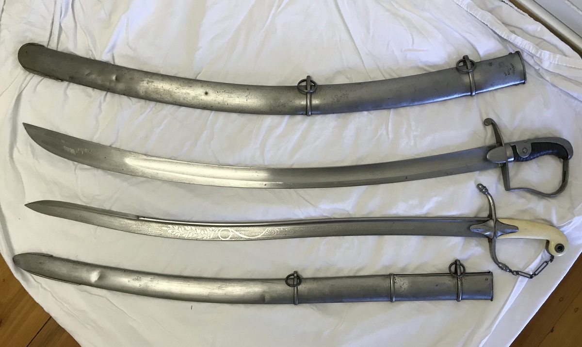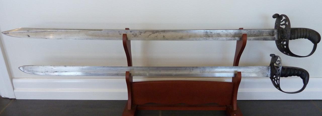 Some examples from my collection of 19th century sword cutlers playing with the design of cutting swords to make them better at thrusting.