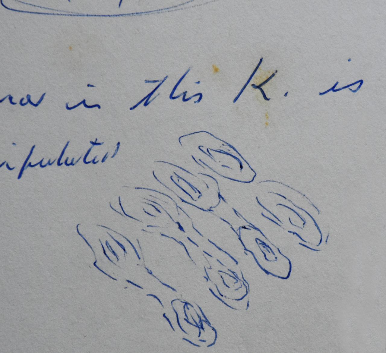 In fact, that pamor was so difficult to see that I sketched the motif, & here below is that sketch. I've forgotten what my impressions were at the time, but looking at the sketch, my impression now is that if a bar was used to produce this pamor, that bar was probably tightly twisted & then bent into a series of "S" bends, something similar a lawe setukal pamor, but in different orientation.