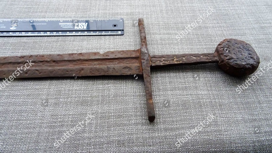First photo of a 13th century sword found in 1980s in a cave in Beckbury, Shropshire U.K. and authenticated through expert sources.
