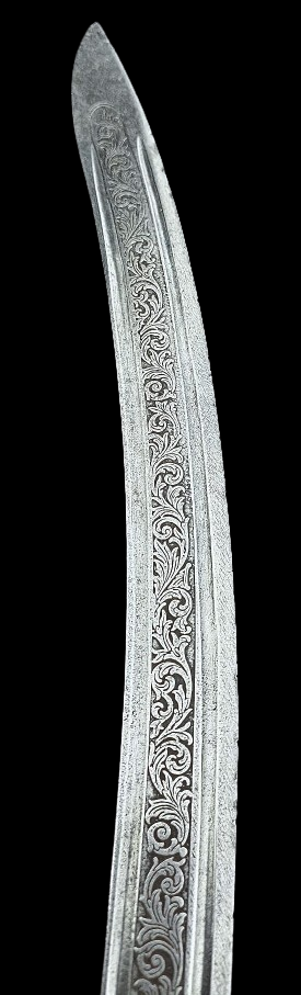 Wayne, does this one have TJIKEROEH engraved on the reverse forte? When I first saw your picture, it did not strike me as being from Tjikeroeh. The foliate engraved design down the blade has some resemblance, but on Tjiker swords it is usually contained within a fuller, and I cannot recall seeing a heavily engraved border around that design on a Tjiker sword before.