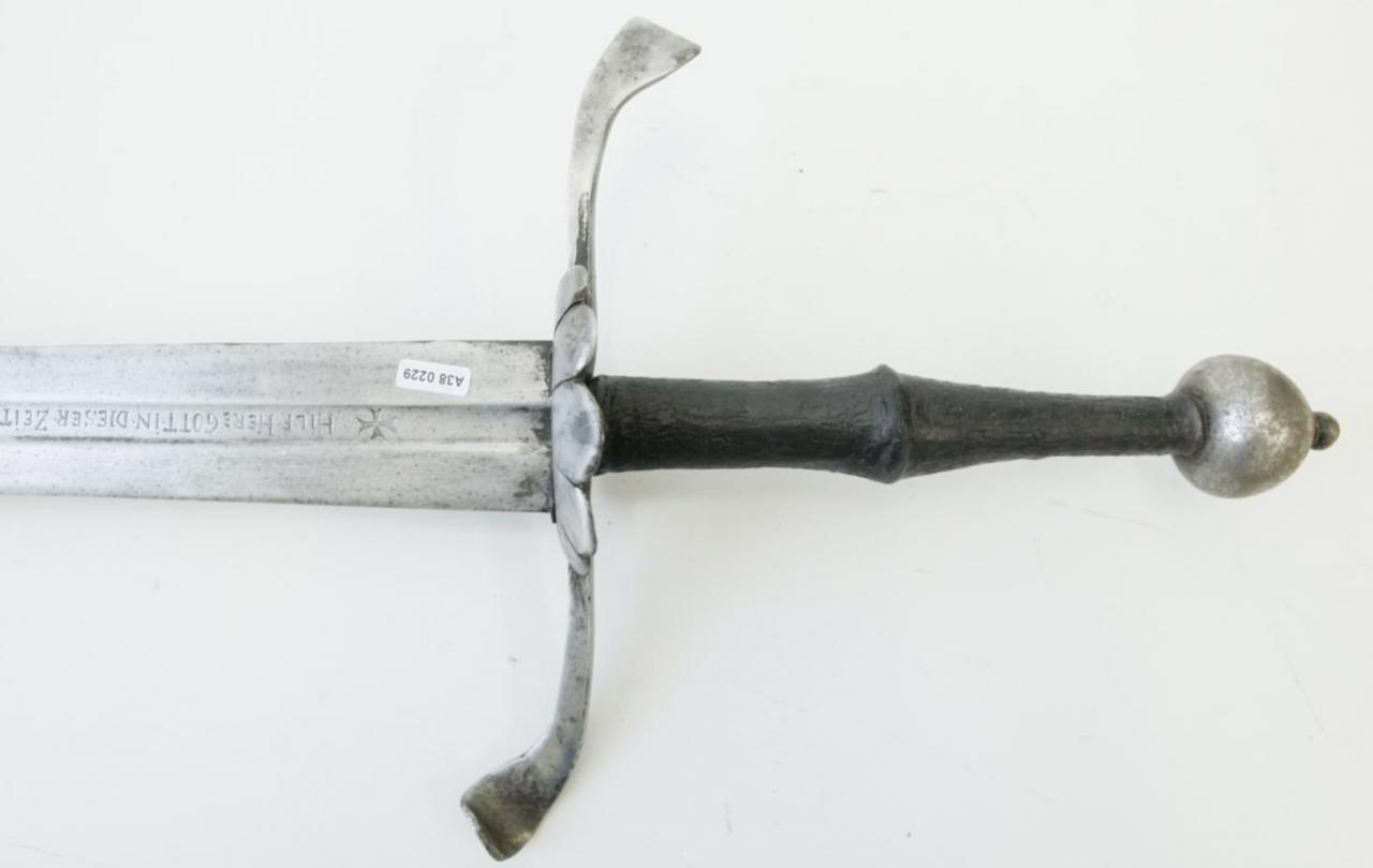 In those days full literacy was probably constrained to the priesthood and legal counsels. The inscriptions are meant to say “Glory to God in the highest” and “St Mary patron of Thorens church.” My first guess was that it’s an execution sword of one of the catholic church city states where the head of state had to dispense punishments to maintain law and order. But there is in fact a castle Thorens in France where this sword may have been used. Struggled a bit with the word “Thorensis” which I take to mean “of Thorens.” https://en.wikipedia.org/wiki/Ch%C3%A2teau_de_Thorens